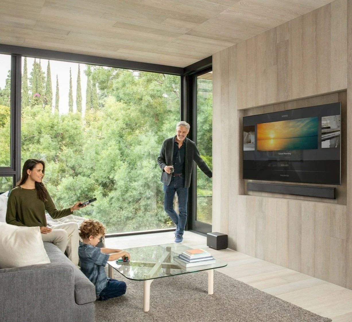 throw away the 5 remotes to run your system and tie in your additional control points. Quickly switch from watching the game or concert and turn on your favorite song in the same room, with just one button press.
